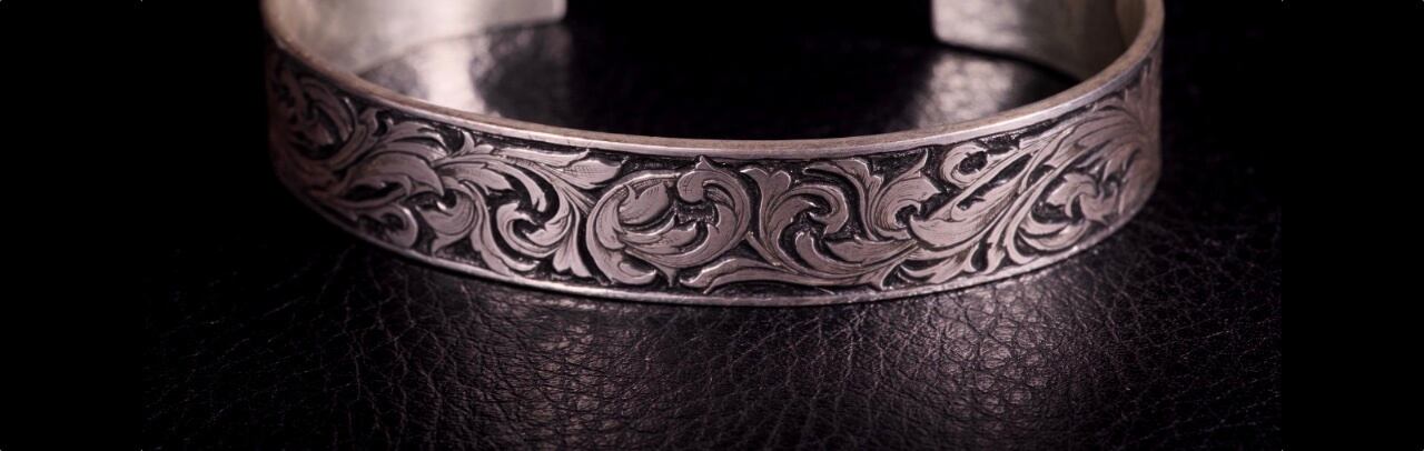 日本では古くから武具、仏具の装飾に彫金技法が用いられていました。近代になると工芸品やジュエリーに生かされるようになります。一方、ヨーロッパをはじめ海外も古くから彫金技法を発展させてきました。デザインは多様ですが繊細で陰影の強いデザインは和彫とは異なる雰囲気があります。