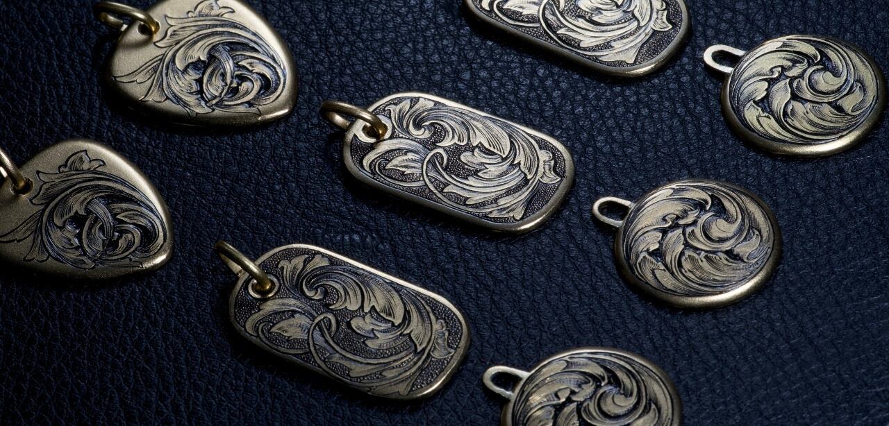メタル・エングレービング・ショップの『カラクサ ワーク』です。洋彫の彫金作品の製作販売をしています。